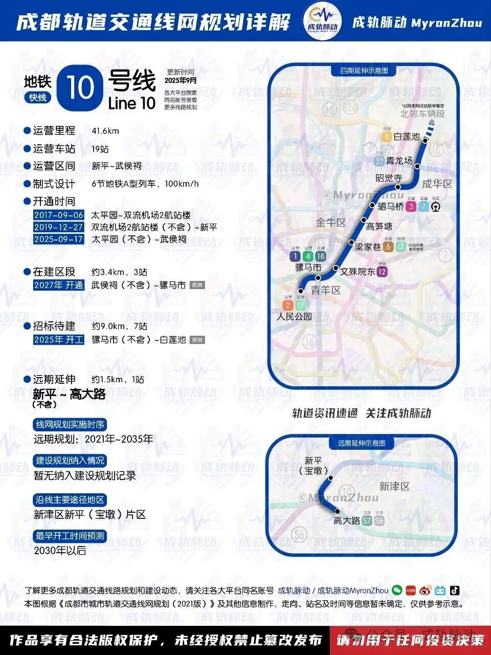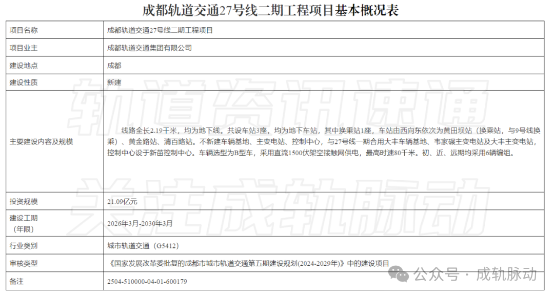 2025年10月16日,成都轨道交通10号线四期、18号线四期、27号线二期经省发改委固定资产投资项目节能审查通过。2025年11月4日,省发改委对三条地铁项目审查意见进行挂网公示,审查意见2年内有效,开工时间逾期需重新进行节能审查报批。该公示中首次披露了3条线路的诸多关键信息,以下将进行详细介绍:
