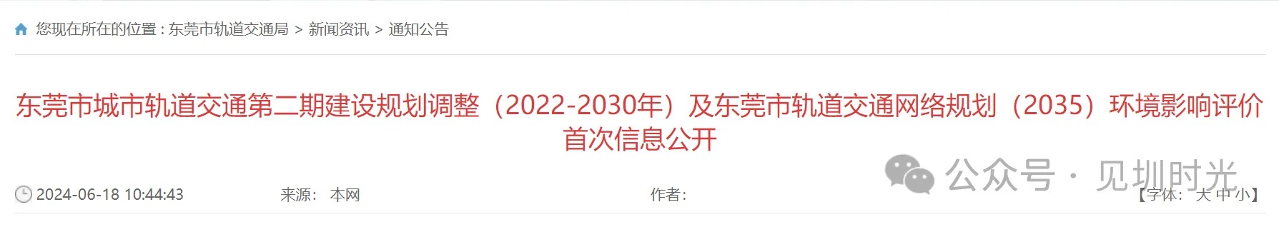 2024年6月18日,东莞市轨道交通局发布东莞市城市轨道交通第二期建设规划调整(2022-2030年)及东莞市轨道交通网络规划(2035)环境影响评价首次信息公开。其中涉及与深圳互联互通的线路4条。深圳6号线支线北延线(东莞段)、深圳20号线北延线(东莞段)、深圳11号线北延线(东莞段)、深圳10号线东延线(东莞段)。